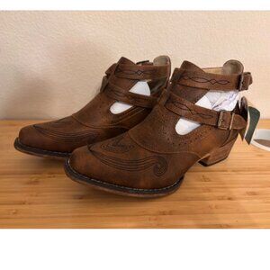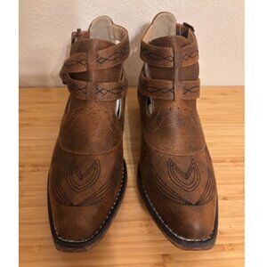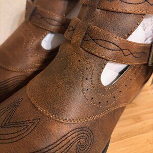 NWT: Roper Willa Shorty Cowboy Boots, Embroidered Faux Leather, Snip Toe, Size 9