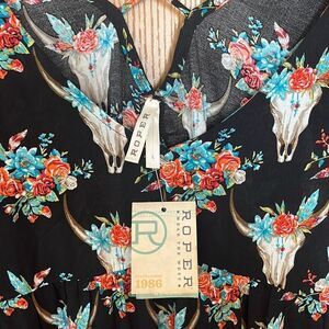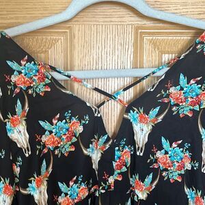 NWT Roper Cow Skull Flowery Cross Back Dress Large