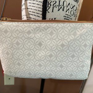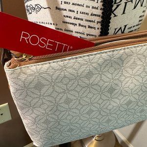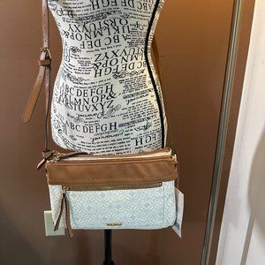 NWT Rosetti White Gray Crossbody Handbag Purse w/ brown trim New Tags Attached!