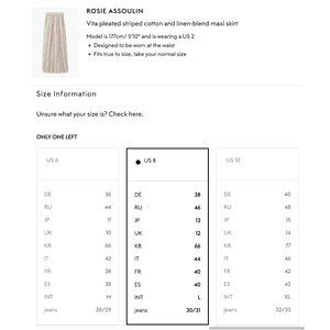 NWT Rosie Assoulin Vita Pleated Striped Cotton and Linen Blend Maxi Skirt US8