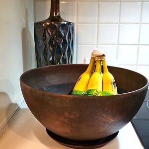 NWT Rosie Bowl Weathered Copper 10" Heavy Plastic W Drain & Saucer