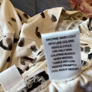 New with tags. Roudelain, a Macy’s brand, women’s size small pj shorts feature a fully elasticized waistband with working tie in solid cream. shorts are a black and grey cheetah print on a soft crème background and they feature two working side pockets. Showing photos of front and back sides along with fiber content and care tags. Machine washable and SOFT.