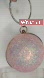 A round glitter bag is definitely a statement piece! light pink in color with silver glitter, gold chain link shoulder strap is detachable, rhinestone ring for wristlet carrying. Opening is 5 inches wide, velvet lining