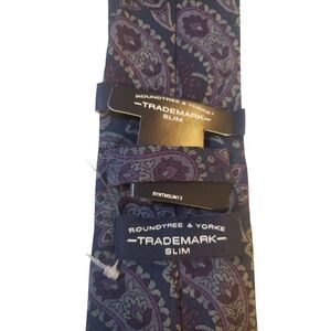 NWT RoundTree & Yorke Luxury Trademark Slim Blue Paisley NeckTie Business Church