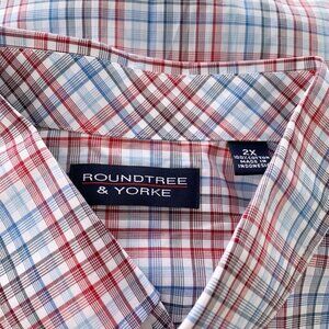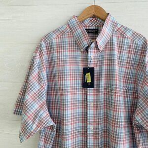 NWT Roundtree & Yorke - Blue red plaid short sleeve button up shirt, 2X