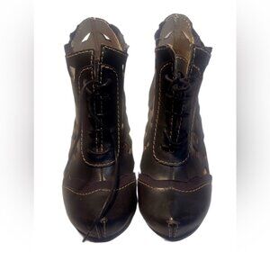 NWT Rovers Black Leather Steampunk Bohemian Trend Coachella Cutout ankle boot 37