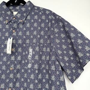 NWT Rowm Men's Button Up Short Sleeve Shirt Cotton Palm Print XL