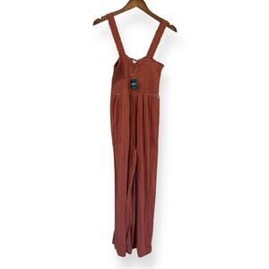 NWT Roxy Adventure Bound Woven Tank Jumpsuit Size S Baked Clay Wide Leg Smocked
