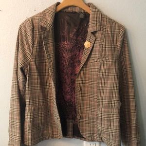 Adorable plaid blazer, comes with yellow flower pin. Great with jeans and a tee or dressed up for work. Open to offers. Fast shipping!