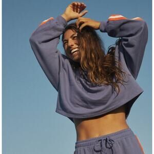 NWT Roxy Bright Lights Crewneck Sweatshirt Large Marlin Cotton Terry Striped