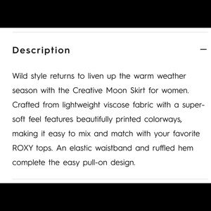 NWT Roxy Creative Moon Skirt. Size Medium. Color: Toast Pattern: Palm Tree Dreams. 100% Viscose. Size Medium. Please see additional detailed description, including Roxy sizing chart above.