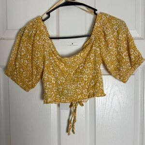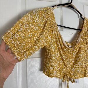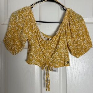 NWT Roxy Flirty Walk Ochre Woodblock Ditsy Cropped Puff Sleeve Top