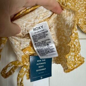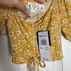 NWT Roxy Flirty Walk Ochre Woodblock Ditsy Cropped Puff Sleeve Top Women Size S