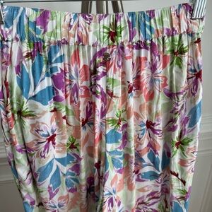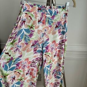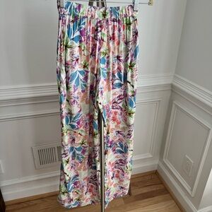 NWT Roxy pants, bright floral design. Comfortable wide-leg fit, elastic waist on back. Perfect for casual outings, beach, boho style.