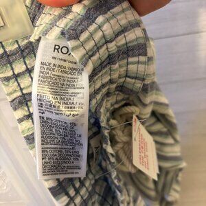 Brand new with tags! Roxy Oceanside striped pants in a lightweight cotton-linen blend, perfect for laid-back days, beach vacations, or casual everyday wear. Features an elastic smocked waistband with rope drawstring, side pockets, wide-leg cut, and back patch pockets. Easy breezy style that pairs well with tanks, crop tops, or swimwear.