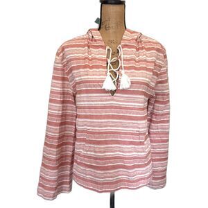 NWT Roxy Paradise Calling Hoodie Poncho Pink Stripes Lace Up Size Small