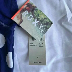 NWT Roxy Swim crop top blue polka dot UPF 50 surfer skater sportswear be…