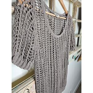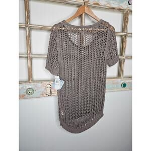 NWT Roxy Large taupe open knit high low short sleeve top. This top is pullover style and a great wear with a tank, bralette, bathing suit... you name it. Cotton and Acrylic are the fabrics and it measures 18.5" pit to pit and 28" front length measurement and 31.5" back measurement. Beach, Sand, Keys, Florida, Hawaii, European, Pool, Cruise, getaway, casual, warm weather wear.