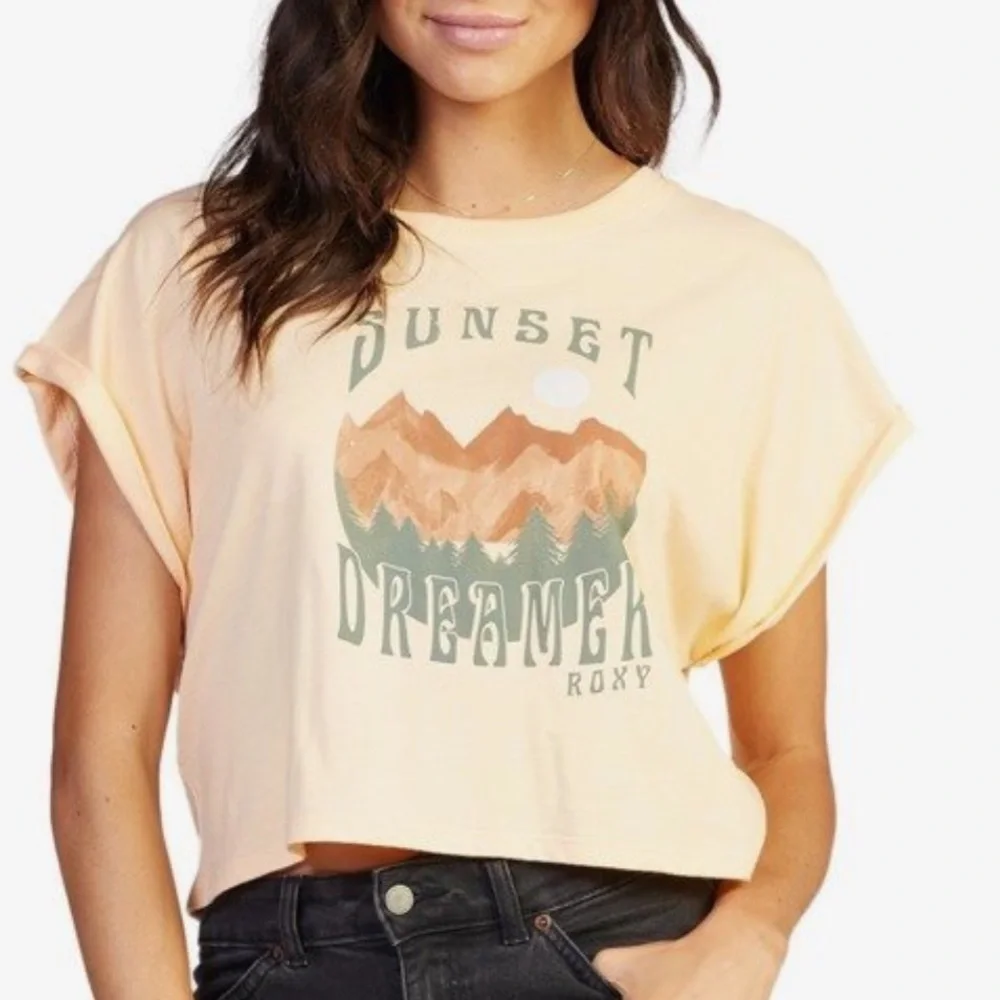 New with tags Roxy Top. Summery Orangesicle colored top with awesome Sunny graphic on front. Cool soft 100% cotton.