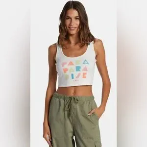 New with Tags Roxy Tank Top. Find your happy place in ROXY's Para Paradise Cropped Tank Top. Made from a soft and stretchy blend of ribbed cotton and spandex, this fitted tank features a scoop neck and a made-for-fun graphic at the chest.