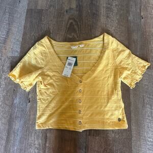 NWT Roxy Uncomplicated Mind Button Front Stripe Tee Sz M Ochre Beachy Yarn