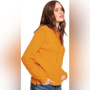 NWT Roxy Women’s Sz L Golden Yellow Glimpse of Romance Crew Neck Knit Sweater
