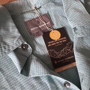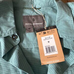 NWT Royal Robbins Desert Pucker Dry Blue Turquoise Button Up Shirt Size M
