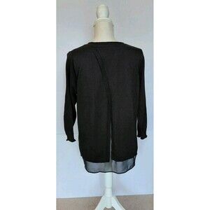 NWT Roz & Ali Black Pullover Sweater w/Sheer Under Layer and Back Split Size XL