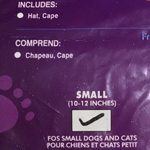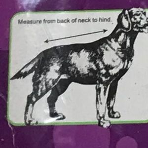 Package says small dogs - measure from neck to base of tail - fits between 10 to 12 inches