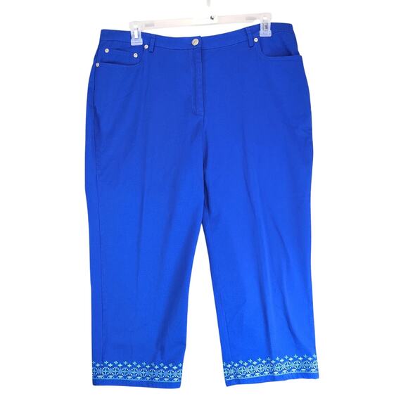 NWT Ruby Rd Blue Embroidered Capri Pants Women's 16 Comfort Waist 38x22.5"
