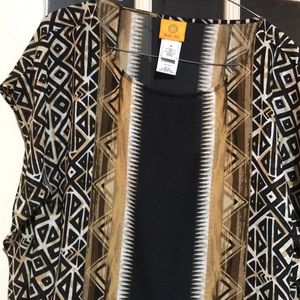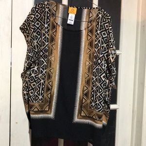 NWT Tribal Revival top. Never worn. Open sleeves. Black/tan/brown/white patterned print.
