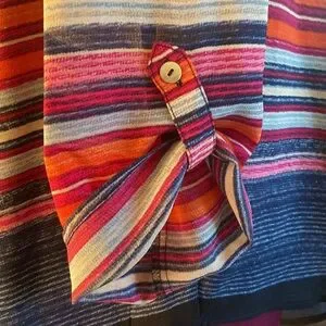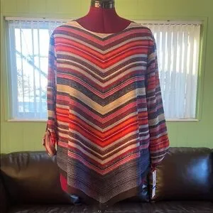 Vibrant and stylish, this multicolor striped sweater is perfect for any occasion. Enjoy the comfort and fashion-forward design.