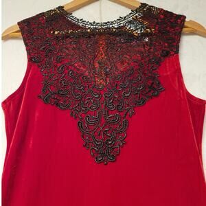 NWT Ruby Red Velvet & Black Lace Maxi Dress Whimsigoth Gothic Witchy Party - M