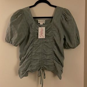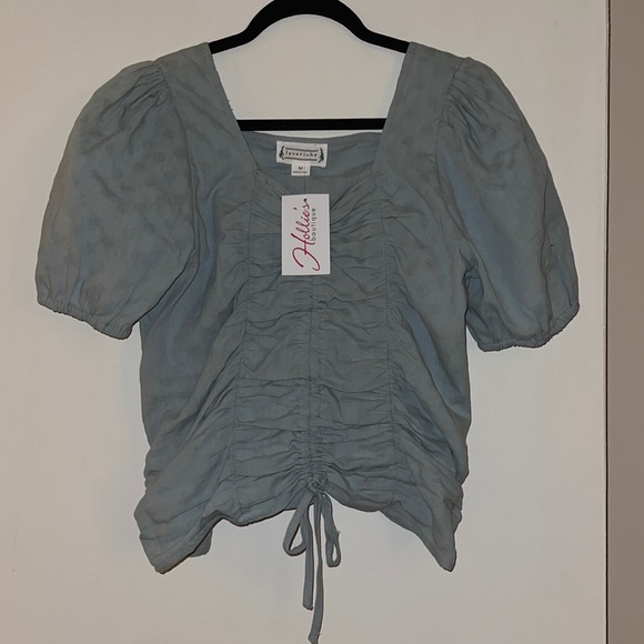 NWT fun top that ties up to allow for as much of a crop look as desired. Sleeves make for a really flattering top! I do take offers :)