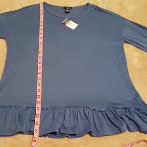 New with tag long sleeve blue top with ruffle at bottom. Really cute! Never worn. See pics for approx. measurements. Soft and perfect for Fall! Size XL.