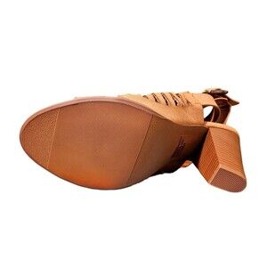 Brand new with tags Rue 21 Etc women's brown open toe with 4" heels shoe size medium 7/8. Comfortable, wrap around buckle strap high heels. They still have the tags on them. Fast shipping!