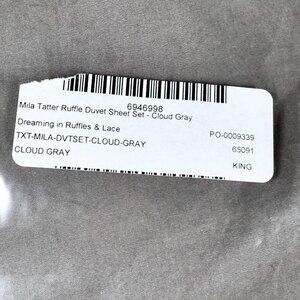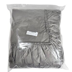NWT Ruffle Duvet Cover Set King 3 PCs 100% Washed Cotton Gray Solid Bedding