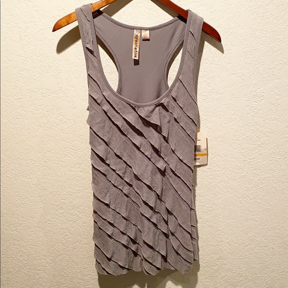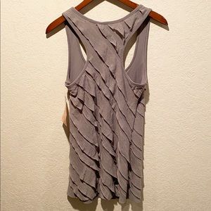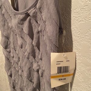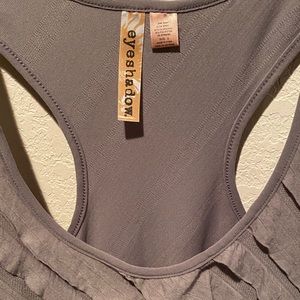 NWT Eyeshadow gray racerback tank. Soft, sheer fabric underneath covered by all over ruffle. Perfect to dress up or down!