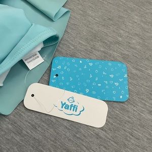 This new with tag, blue ruffle swimsuit is perfect for the summer! The top is padded, and this item is unworn, with the protective hygiene sticker intact.