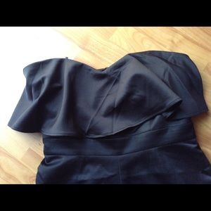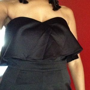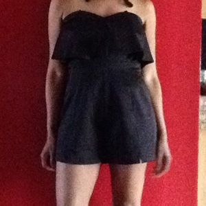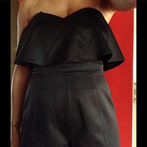 NWT Ruffle Strapless Top Romper; Perfect with heels for a night out or throw on a pair of sneakers for a casual look! Fabric: (Shell) 100% Polyester (Lining) 97% Polyester 3% Spandex; Measurements: Bust 36; W 31; Hips 40; Inseam 4