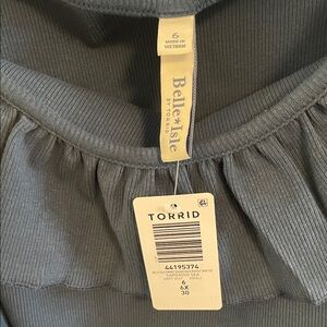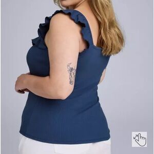 NWT Belle Isle for torrid. Soft blue camisole with a ruffled square neckline. Stretchy knit for a snug, comfortable fit. Sleeveless design ideal for layering or warm days.