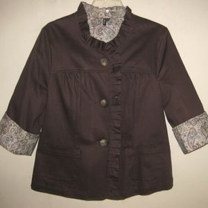 NWT Ruffled shirt jacket XL Cotton bl Brown Paisley Pockets Buttons Fall Swing