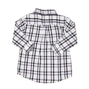 Shades of purple and white checkered long sleeve button down. Pocket on left chest. Size: 6-12 Months. New with tags.