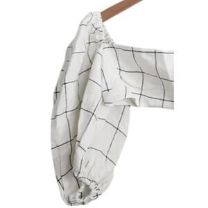 NWT Rumer Quinn Plaid 3/4 Puff Sleeves Linen Crop Top Back Clasp Closure M Ivory