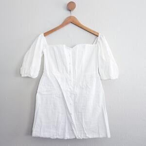 Designer, Revolve, Mini Dress, Off Shoulder, Off the Shoulder, Puff Sleeve, Balloon Sleeve, Button Down, Cotton, White, Sundress, Spring, Summer, Bridal Shower, Vacation, Aje, Zimmerman