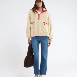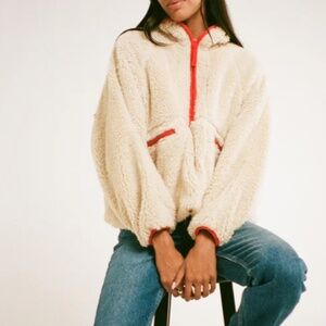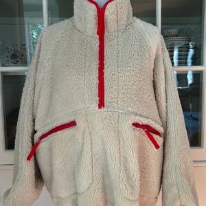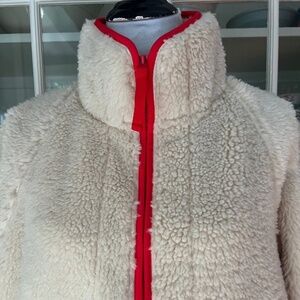 NWT Rumored Sun Valley Sherpa Fleece Jacket Size M/L Ecru White with Red Trim