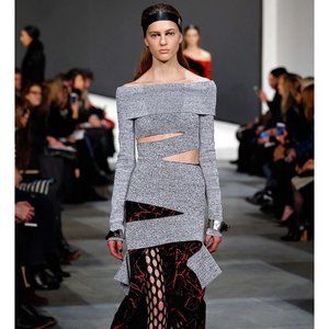 NWT Runway, Collectors, So Rare ❤ Proenza Schouler Slashed Matte Viscose Off The Shoulder Black / White Knit Top. Size Small. Zips on the side.