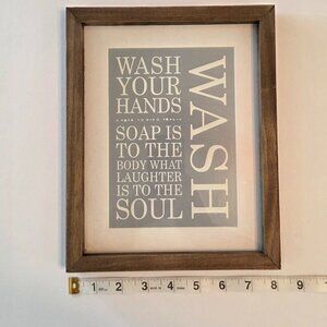 The playful message reads: “Wash your hands. Soap is to the body what laughter is to the soul.”