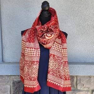NWT Red Silk scarf/stole/wrap. This beautiful silk scarf is all handmade with hand block print. Look at the unique print on it. Very reasonably priced. perfect for any outfit, occasion, church service, as an gift. You will not find This unique scarf any where. Beautiful silk fabric gives it a very rich and elegant look.