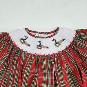 #ruthandralph #christmas #geese #smocked #helen #dress #wreath #embroidered #plaid #tartan #red #new #nwt #gift